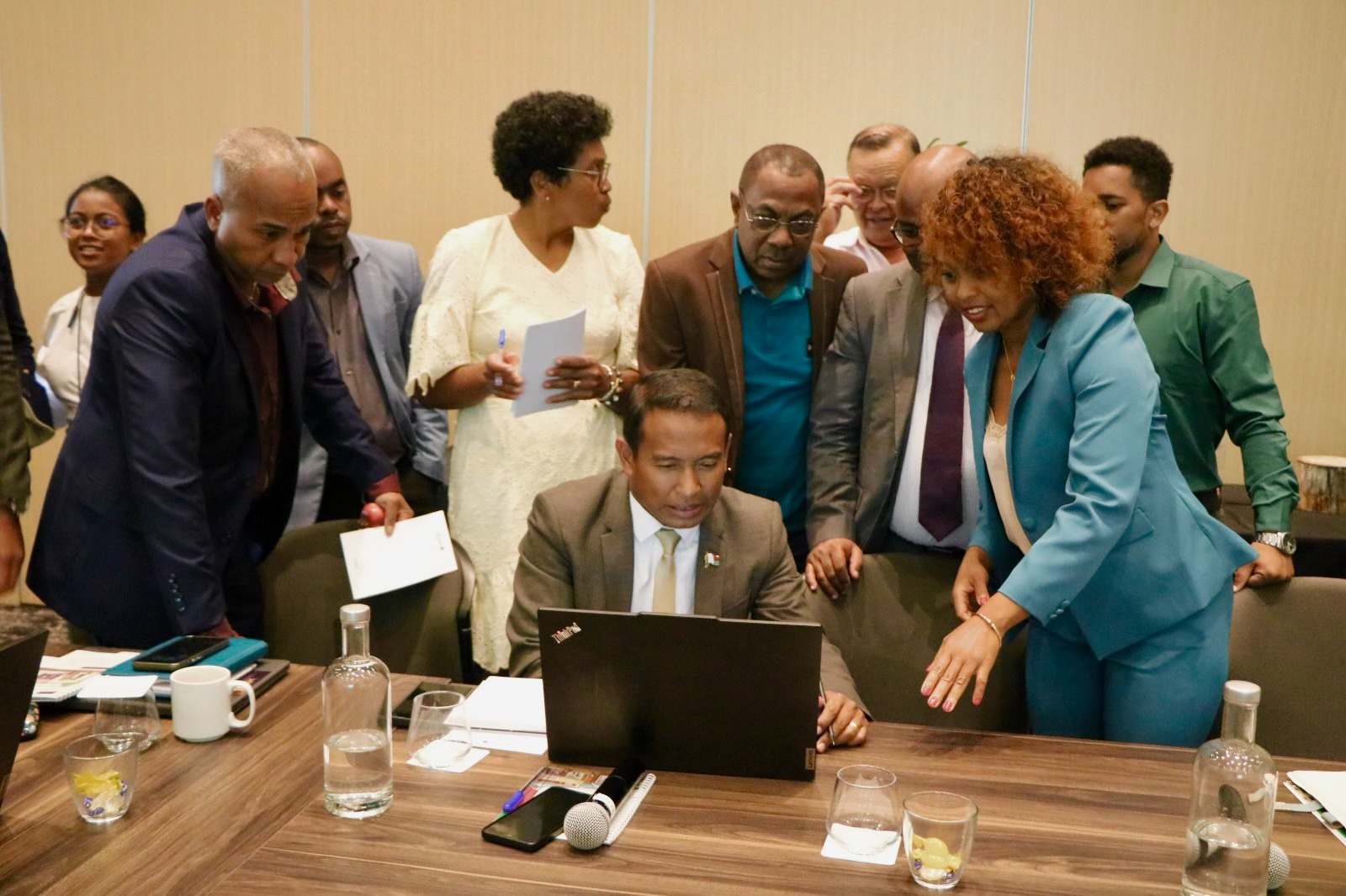 La mise en œuvre du Dispositif district 2.0 repose sur une approche collaborative impliquant divers acteurs. Une task force composée d’agents du @MinisIteran’ny Fitsinjaram-pahefana sy ny Fanajariana ny Tany – MDAT et du Ministeran’ny Atitany – Pejy ofisialy – MININTER, de Chefs districts et de représentants des Partenaires Techniques et Financiers (PTF) en assure la coordination. Les principaux PTF, notamment le projet #PRODECID /GIZ et le programme #MIONJO de la Banque mondiale, sont alignés sur cette démarche appuyée par le Programme des Nations Unies pour le développement – PNUD Madagascar