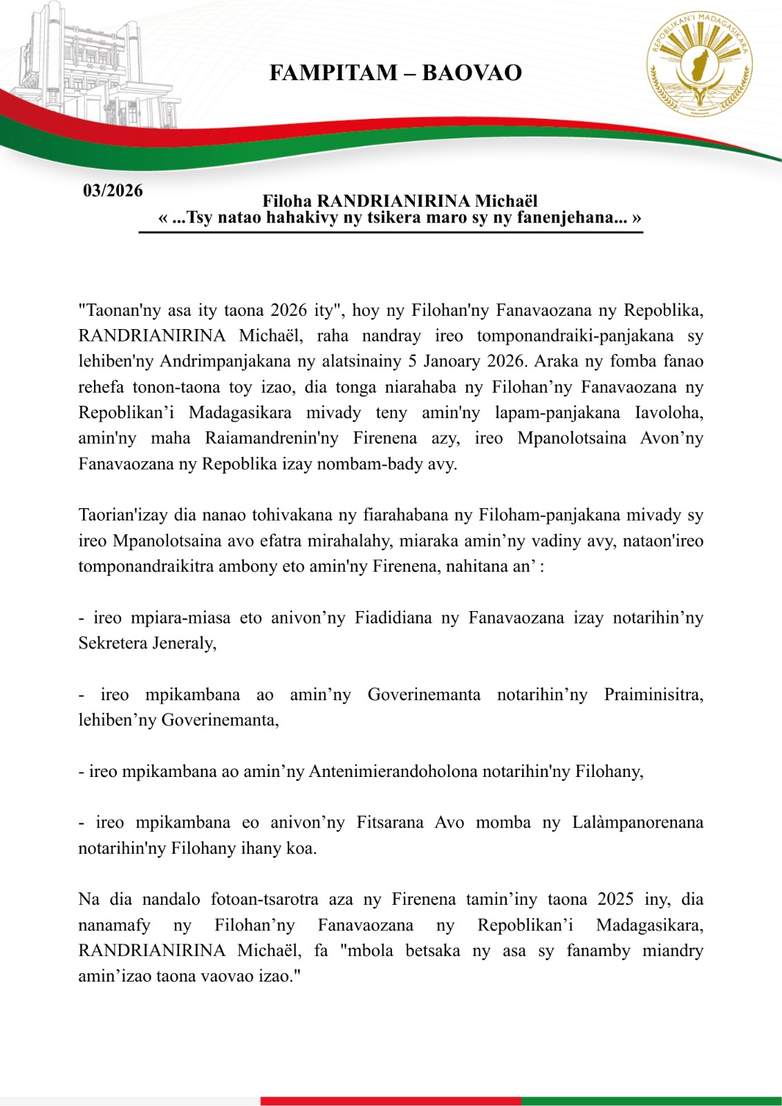 29 𝙳𝚎𝚜𝚊𝚖𝚋𝚛𝚊 2025 – 𝚅𝚘𝚑𝚒𝚝𝚛’𝚒 𝙼𝚊𝚗𝚓𝚊𝚔𝚊𝚖𝚒𝚊𝚍𝚊𝚗𝚊 𝙰𝚗𝚝𝚊𝚗𝚊𝚗𝚊𝚛𝚒𝚟𝚘 Mbola mitohy ny rotsak’orana, ahiana hatrany ny fiotsahan’ny vato sy tany ary trano izay amoizana ain’olona maro isan-taona eny amin’ny Vohitr’i Manjakamiadana, mitohy ihany koa arak’ izany ny asa fanentanana izay efa...